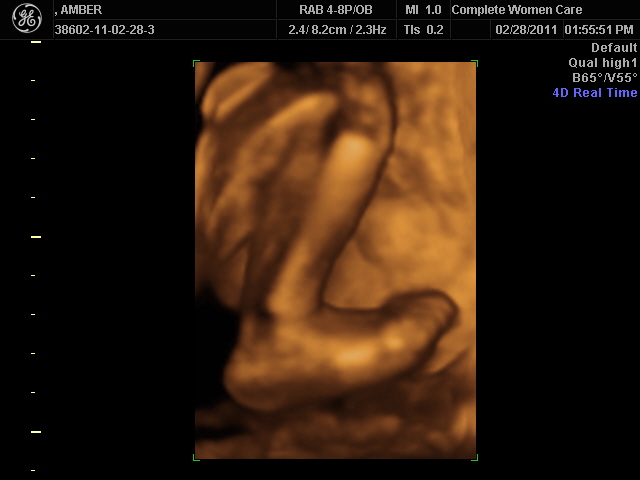 It's been a while since I last wrote.. we've been busy! I simply cannot believe how fast this pregnancy has gone by. I'm very excited to meet my son and back at the end of February we got to take a peek into my belly to see him. It was really fun. Some of the family joined us at the doctor's office to have a look at August, including my little Teagan. He was very cooperative during the ultrasound and we got some great pictures! The best part, for me, was seeing Teagan's reaction to the whole thing. She was so cute! Everytime that Teagan spoke to him, he would turn and open his eyes!! It seems that he already loves his big sister :) Here are some pics from the ultrasound: